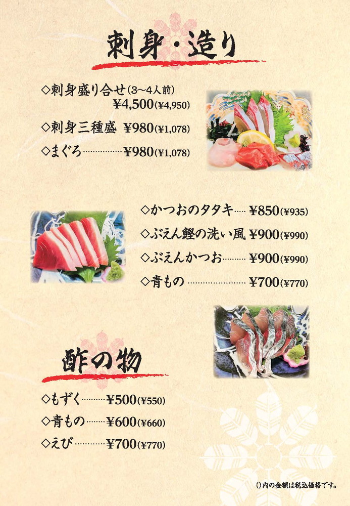 薄切りにした真っ赤な鰹をニンニク入りの酢みそで食べるさっぱりしたメニューです。