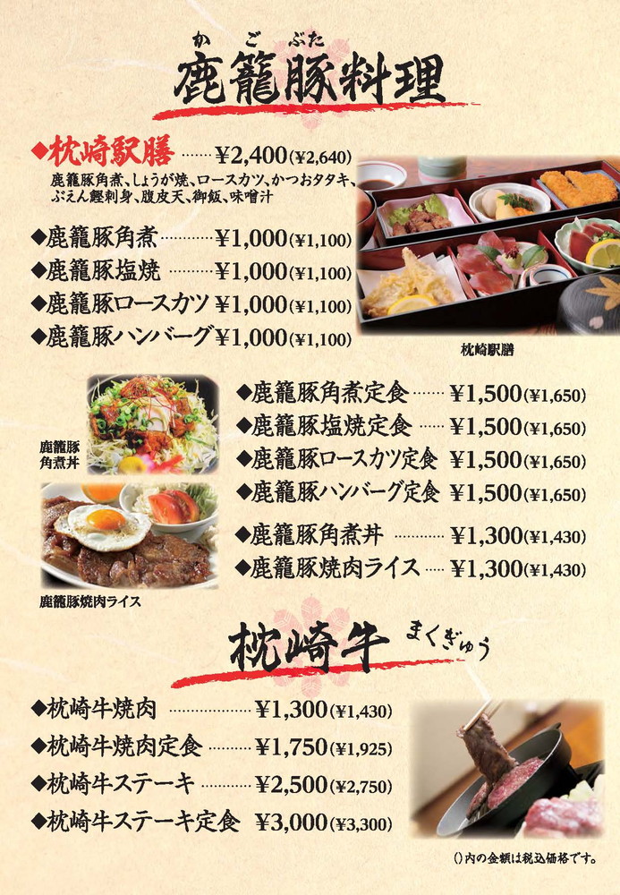 鹿籠豚(かごぶた)はとんかつ、生姜焼き、角煮と3種類づつの料理が楽しめます