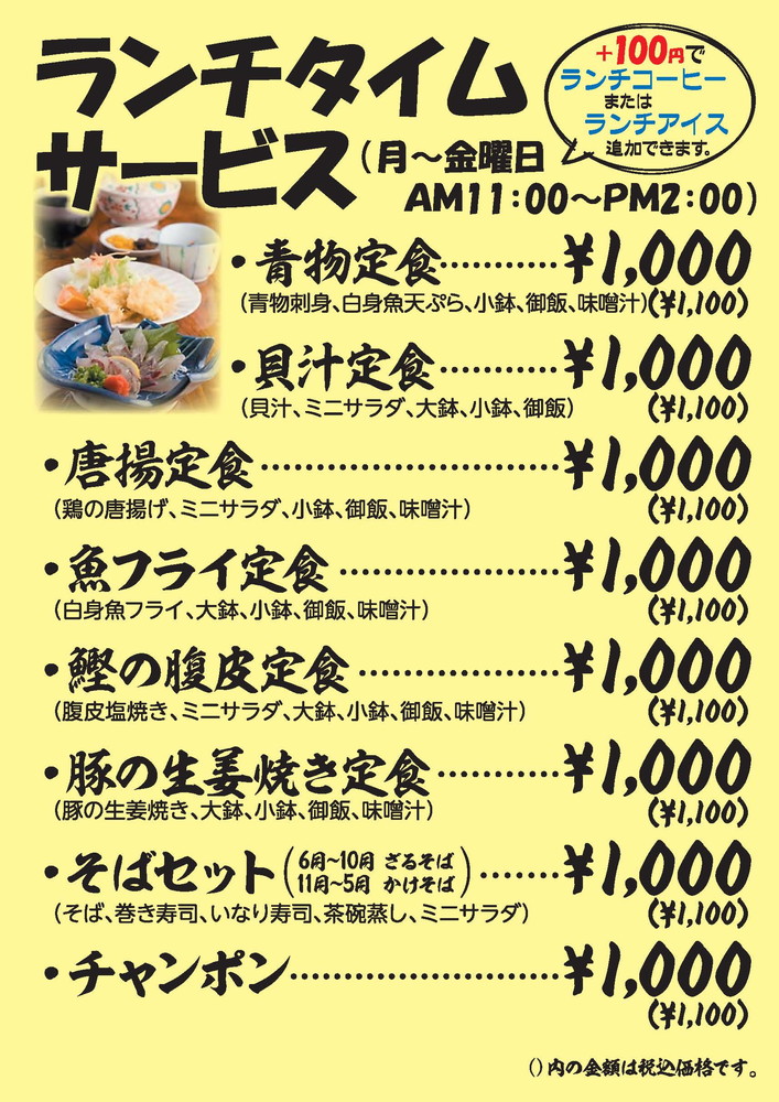 ランチメニュー (月〜土曜日 AM11:00〜PM2:00)